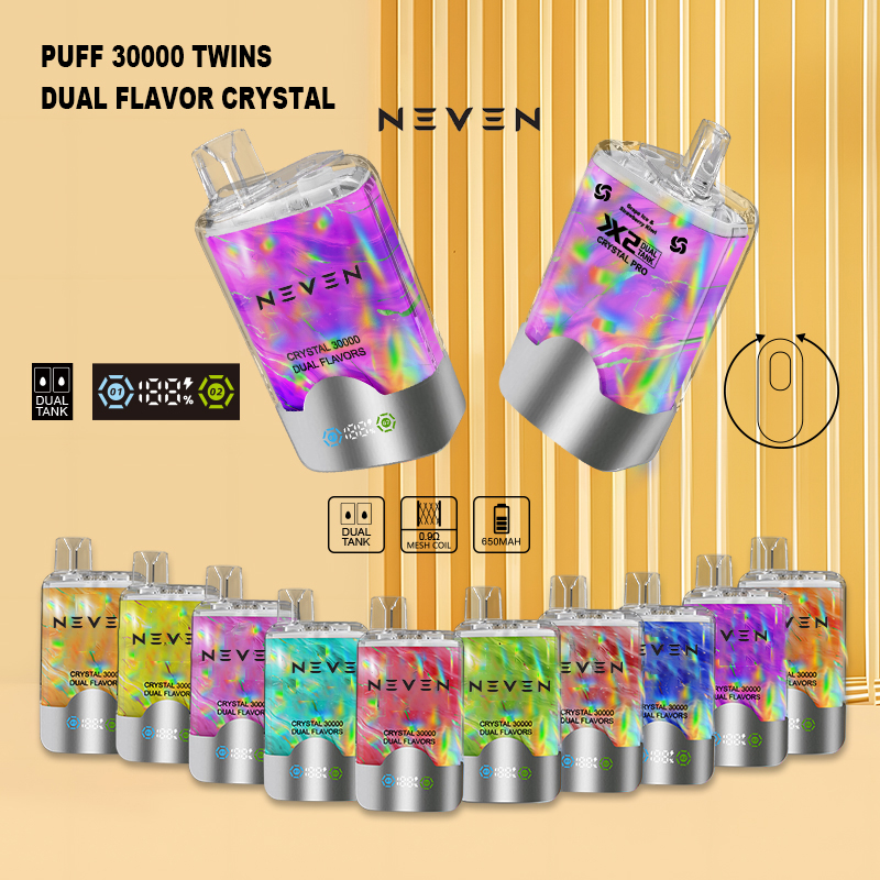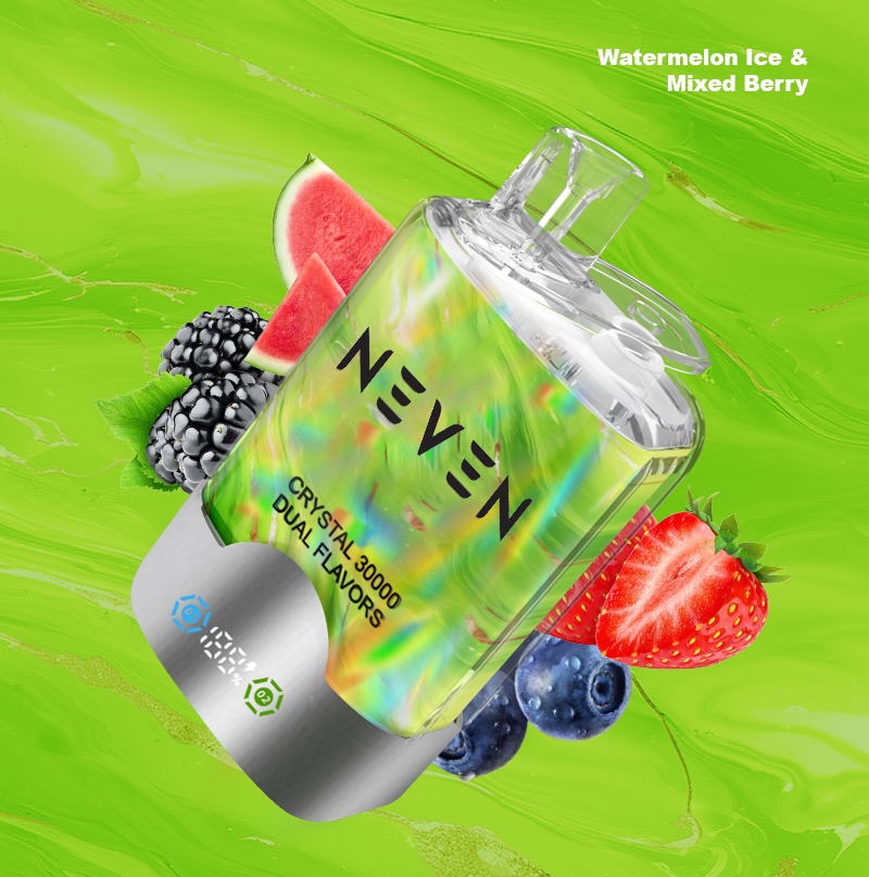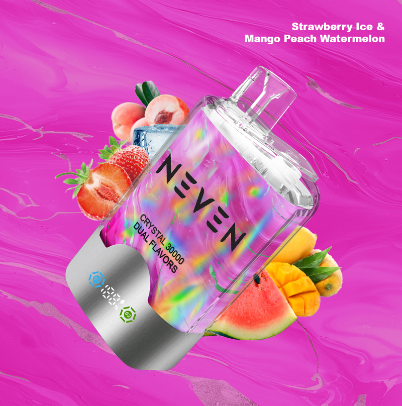 تتوفر سيجارة NEVEN X2 TWINS 30000 CRYSTAL القابلة للتصرف بـ10 مجموعات من النكهات المزدوجة المبدعة، كل منها يتضمن مزجًا من نكهات عالية الجودة تم تحضيرها باستخدام مكونات صالحة للطعام. مثلج بلاك آيس مع دراغون فروت فراولة و توت العليق بطيخ