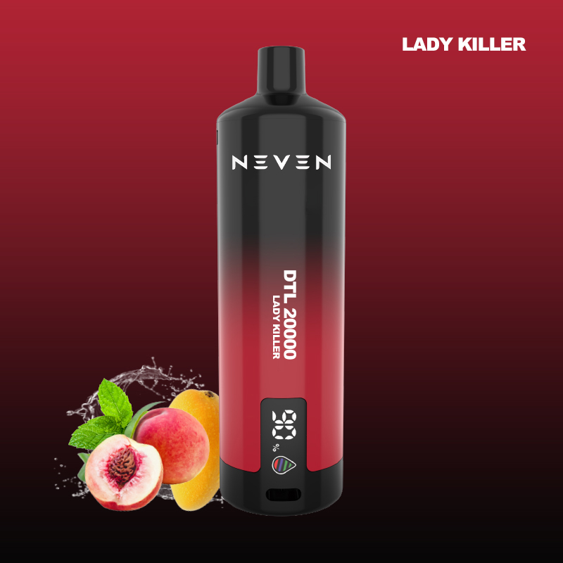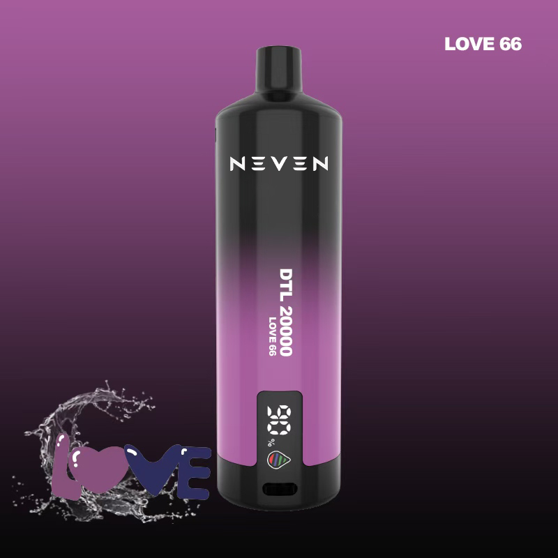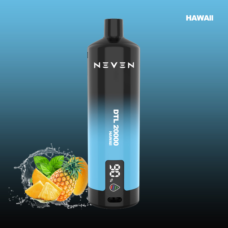 The NEVEN Model DTL20000 disposable vape model is an advanced disposable vape designed to provide a special vaping experience. With a generous electronic liquid capacity of 25 ml and the ability to survive up to 20000 puffs, the newest vape brings long-term joy and special value. This newest vape has a great gradient color design that shows modern elegance, while the integrated LED screen provides real-time updates on liquid levels and battery life. Designed for vaping directly on the lungs (DTL), the DTL20000 creates delicious vaping clouds, imitating the sweet experience of smoking shisha. Its adjustable airflow allows you to refine your draft resistance, ensuring a personalized vaping experience, while mesh technology ensures smooth and consistent vape production in each puff. Provided by an 800mAh rechargeable battery with Type-C fast charging, the DTL20000 rechargeable vape pen combines both designs and functions for a high-performance vaping experience. With 12 flavors designed in the way experts choose, this skinny vape targets a series of tastes; this makes it an ideal choice for vaping.