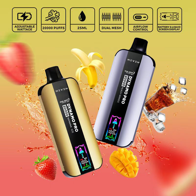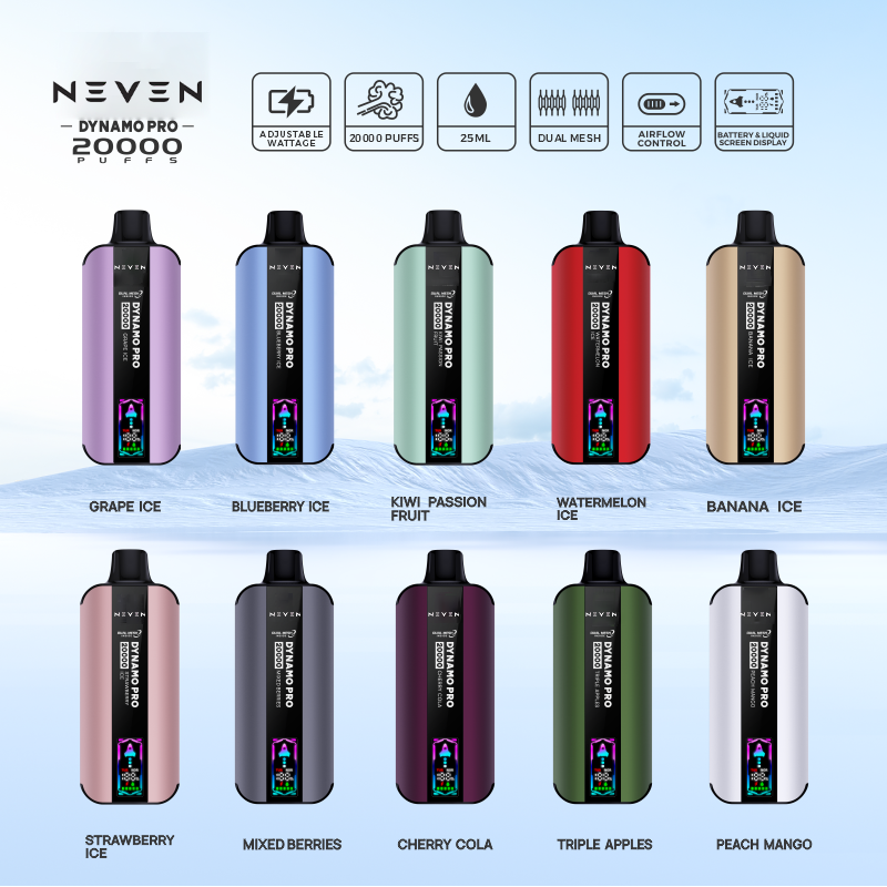 The NEVEN 20000DP disposable vape is a high-performance vape that makes the vapers require both style and quality. With a two-network coil system for improved steam production and providing flavors, this device is full of 25 ml of wide-power e-liquid, providing up to 20000 smooth puffs. Pushed with a 650mAh rechargeable battery and fast Type-C charging port, this nicotine vape is designed to follow the vaping sessions. Wrapped in an elegant and flat aluminum alloy frame with a refined metal layer, shelves radiate elegance. Its design is still raised by a vibrant black lens, which contains a dynamic LED screen with a magical missile animation and real-time indicators for battery and e-liquid levels. Adjustable airflow systems and dual power mode (turbo and normal) allow users to personalize their experience—bold and dense clouds with lighter and smoother attraction. With 10 flavors built in an expert way, the NEVEN 20000DP nicotine vape not only promises aesthetic appeal but also is a rich and prominent performer in the vape market.